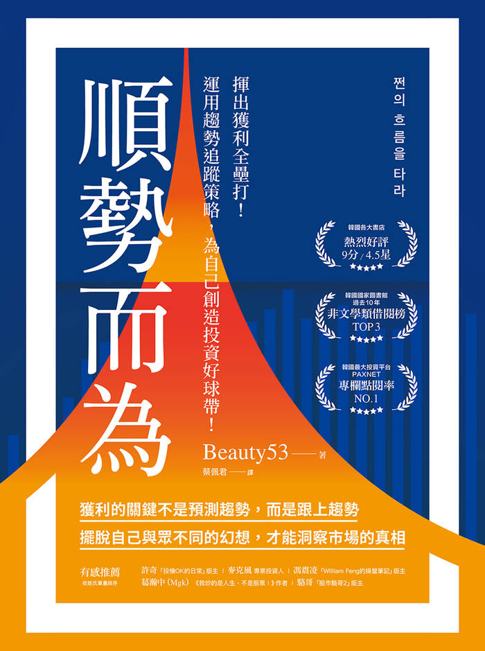 本书是韩国职业交易员 Beauty53 的实战投资指南,核心主张是:获利的关键不是预测趋势,而是跟上趋势。作者打破“靠预测市场高低点赚钱”的迷思,提出“趋势追踪”策略,教投资者摆脱“想和市场不一样”的主观幻想,顺应市场走势,为自己创造稳定获利的投资好球带。