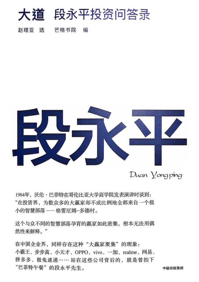 作者简介:赵理亚,资深价值投资研究者,长期致力于段永平投资思想体系的研究与传播。作为国内系统梳理段永平思想的投资人,他编纂的《段永平投资问答录》百万字体量呈现了段永平多年来在平台上与网友的问答,建立起涵盖商业逻辑、企业文化、价值投资等维度的框架。作为践行价值投资理念的公益行动,赵理亚承诺将全部版税收益捐赠给六和公益阅读发展中心,用于支持阅读推广事业,彰显知识传播与社会责任并举的价值追求。