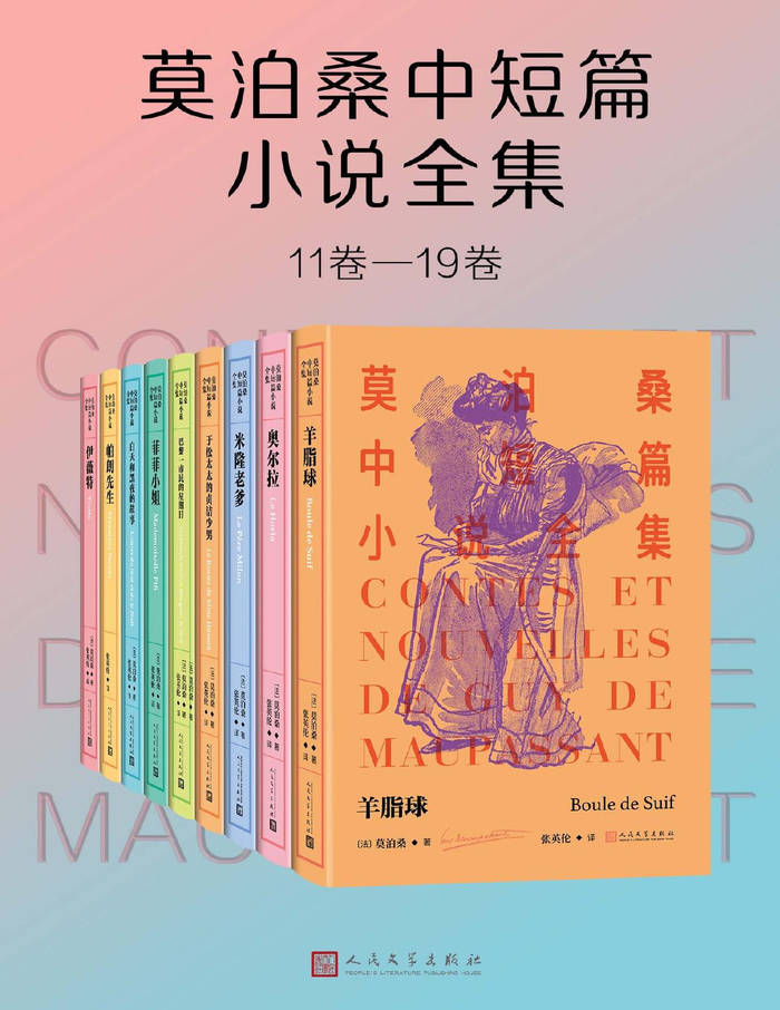 莫泊桑的中短篇小说深深植根于现实的土壤,题材广泛,以描摹他那个时代法国社会风俗为主体,人生百态尽在其中。在法国出版的莫泊桑作品集中,影响最大的当推保尔·奥朗道尔夫出版社出版的《插图本莫泊桑全集》(1901-1912)。这套全集里的中短篇小说部分共十九卷,其中的十五卷篇目和目次均与莫氏自编本基本相同。另有四卷为该出版社补编,这十九卷共收莫泊桑中短篇小说二百七十二篇。