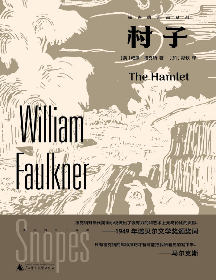 本书以法国人湾乡村为背景,讲述了北方资本主义工商业的代表人物弗莱姆·斯诺普斯如何利用一系列狡诈和欺骗的手段逐渐从政治、经济、伦理道德等方面征服了代表南方文化的村子法国人湾。小说在结尾处入木三分地描述了弗莱姆怎样把捕来的一群野马假冒驯马卖给当地居民,又把一块荒地伪装成有宝之地,高价卖给村子中的村民,然后离开村子进军杰弗生镇。作品风格简洁明了、干脆利落,形成了鲜明的特色。