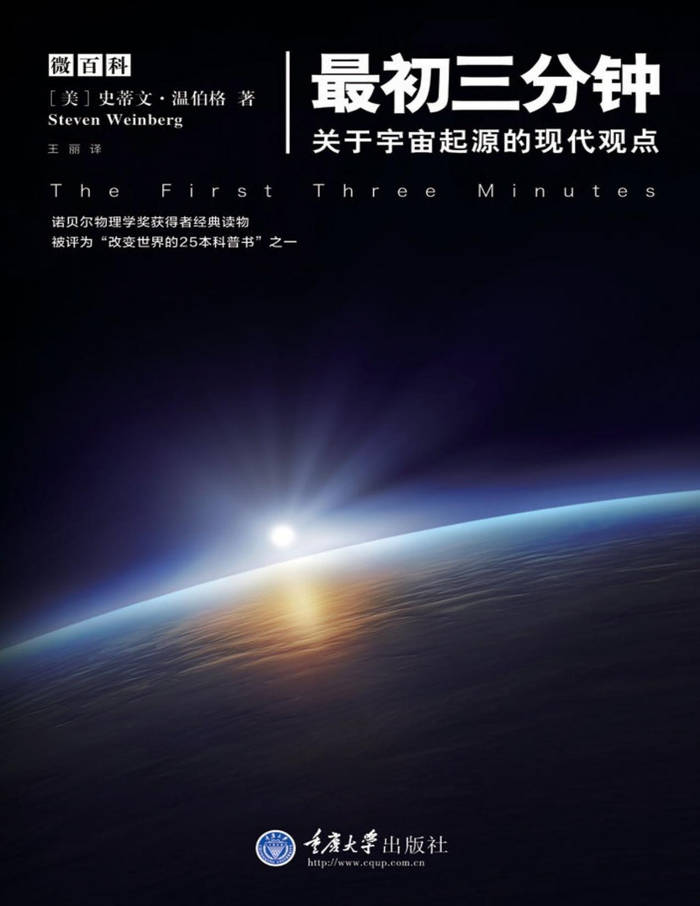 这本科普读物为1979年诺贝尔物理奖得主,美国物理学家史蒂文·温伯格在1977年写的一本畅销书。此书被公认为科普读物的里程碑。也是最早关于探讨宇宙起源的代表作品。宇宙在最初0.01秒、1秒、1分钟或最初一年,是什么样子?早期宇宙在某时刻的温度、密度和化学成分如何?《最初三分钟》将揭秘宇宙爆炸的形态,详细描述了一幅完全令人信服的宇宙起源图,包括在大爆炸之后仅仅数秒或几分钟内出现的详细过程。
