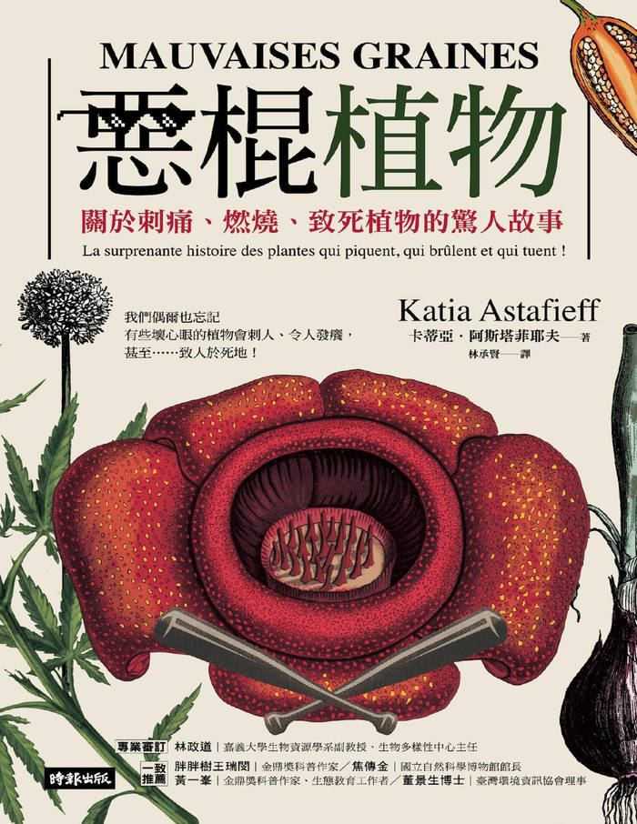 我们偶尔也忘记有些坏心眼的植物会刺人、令人发痒,甚至……致人于死地!小心!恶棍植物来了~ 对大多数人来说,植物的形象都十分正面:为花园润色、为室内增添香氛、以营养滋养人类、治疗人类、成为人类的衣着……讨人喜欢。然而,也有些恶棍般的植物存在,它们会令人刺痛、发痒,甚至带来致命威胁!虽说这些恶棍植物演化出令人生畏的特征,但目的并非危害人类,而是为了适应环境限制的求生之道。毕竟植物没有脚,遇到危险时无法逃跑,只能发展出这些“诡计”以求在大自然中延续生命。烟草、大猪草、大麻、曼陀罗、辣椒……