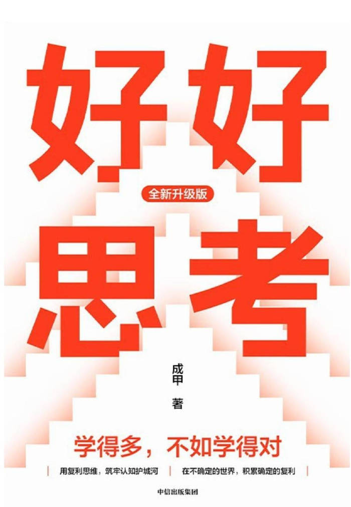 作者简介:成甲,“复利人生”思想的传播者与终身实践者。他致力于探索如何有效联结个人兴趣、知识、友谊与事业,构建一个可持续增值的“复利网络”。他坚信“做真实的自己,和喜欢的人,做欢喜的事,走共赢的路”。以此为原则,他发起了“万物社群”,开设了“复利日知录”专栏,与相信复利思想的同行者共同探索与成长。作为查理·芒格思想的深度研究者,他曾于2019年赴美专访芒格先生,并持续多年在《穷查理宝典》慢读会中深入研究芒格思想。其研究成果形成《好好学习》《好好思考》等作品。他曾被亚马逊中国评为“年度新锐作者”。《好好思考(全新升级版)》集中体现了他近几年对应用复利思想与建立知识体系的最新思考与实践。