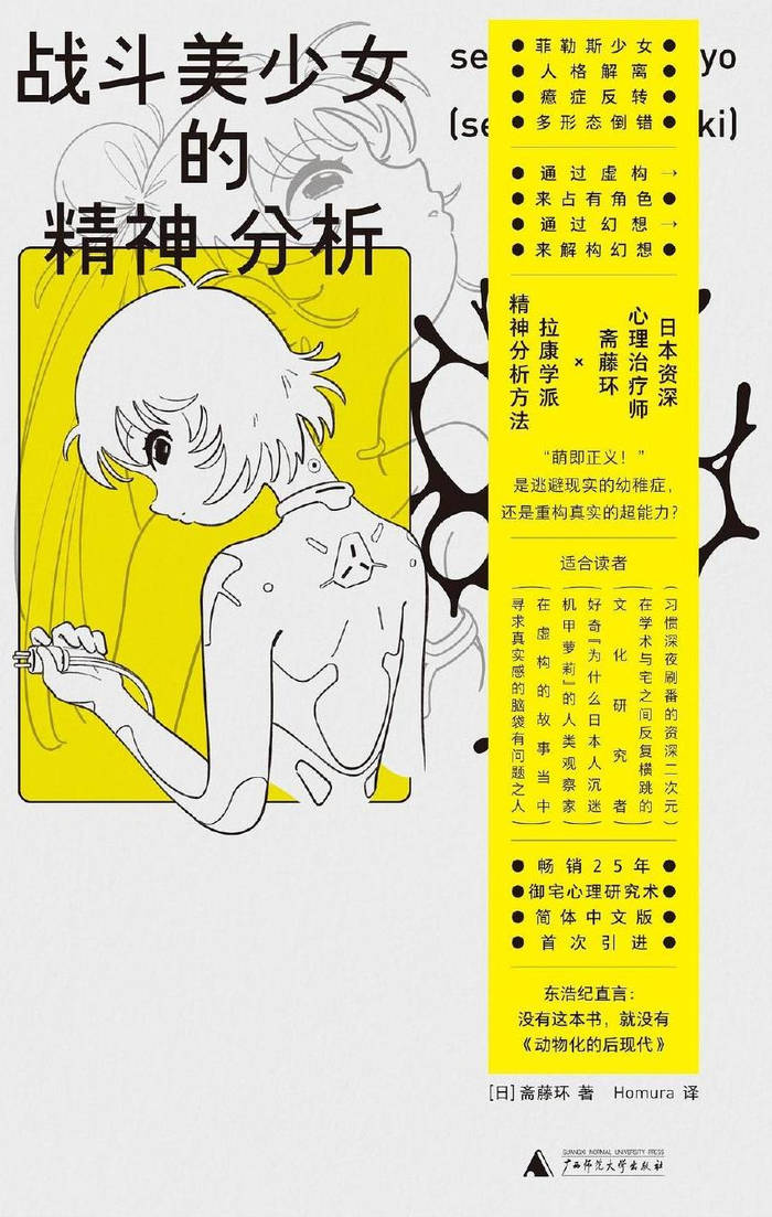 日本著名精神医师斋藤环在《战斗美少女的精神分析》一书中,试图通过精神分析学和社会文化的视角,揭示“战斗美少女”风潮背后复杂的心理和社会动因。通过引入“菲勒斯少女”(phallic girl)的概念,并与欧美文化中的“女战士”形象作对比,斋藤环指出,“战斗美少女”是获得自律性真实的虚构,是象征与想象的融合,更是欲望与身份在媒体空间中持续生成的过程。要理解这一文化现象,需超越单纯的“日本特殊论”,重新思考虚构在现代社会中的意义与作用。