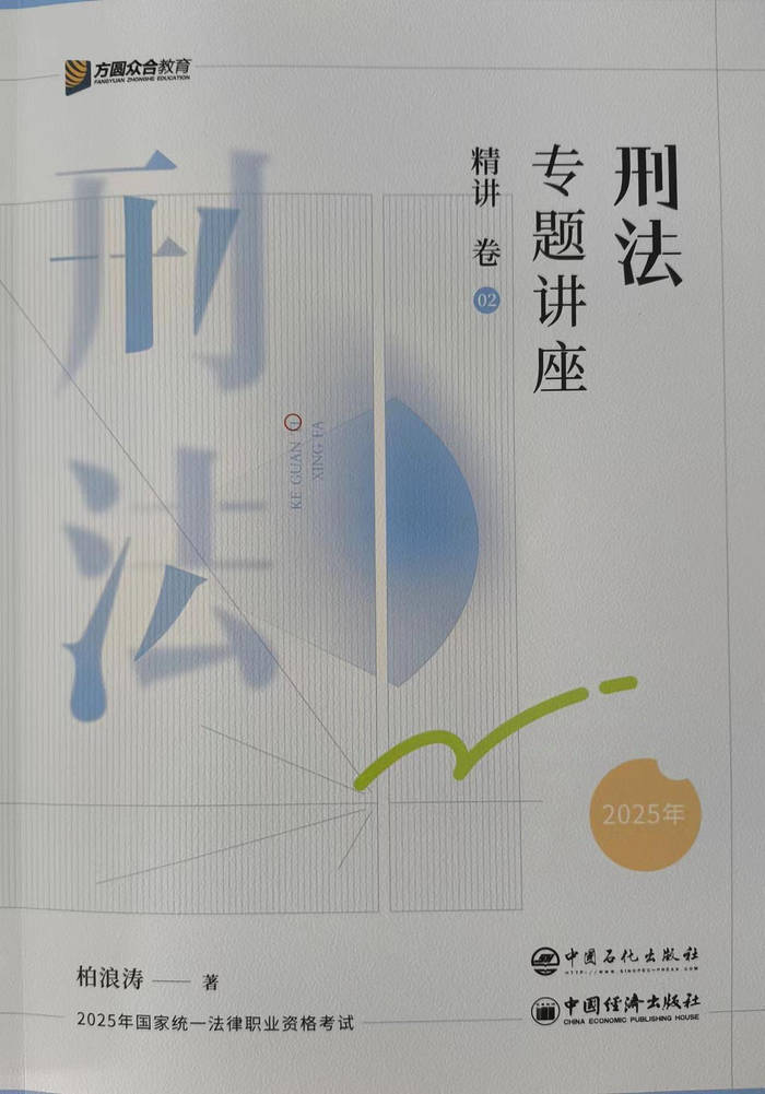 《刑法专题讲座精讲卷》是众合教育出品、中国石化出版社出版的法考核心教材,由 “柏神” 柏浪涛撰写,以专题化体系 + 德日新理论 + 案例模型为核心特色,是法考刑法备考的 “基础必选” 资料。全书承袭十数年经典专题化理念,按 “总论 + 分论” 编排,将刑法知识拆解为独立专题,每个专题融合理论、法条、案例、考点四大模块,兼顾系统性与应试性。