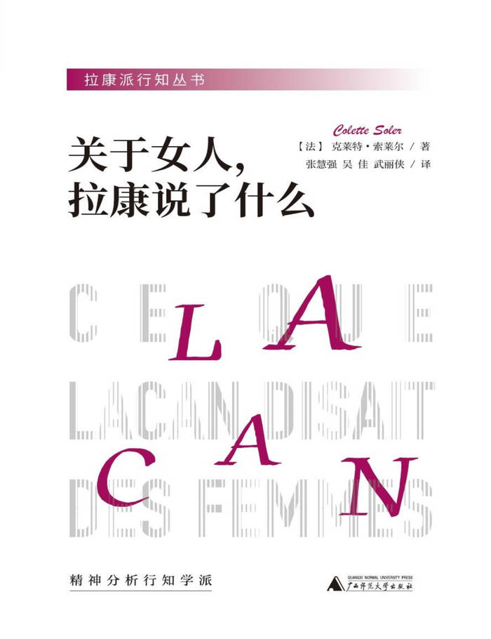 作者简介:克莱特·索莱尔,拉康最著名的弟子之一,法国心理学博士,精神分析家,巴黎精神分析临床学院教员,法国EPFCL精神分析学派创始人之一。她出版了《关于女人,拉康说了什么》《拉康,重新发明无意识》、《拉康派论情感》、《精神病敞开的无意识》等诸多拉康学派著作。