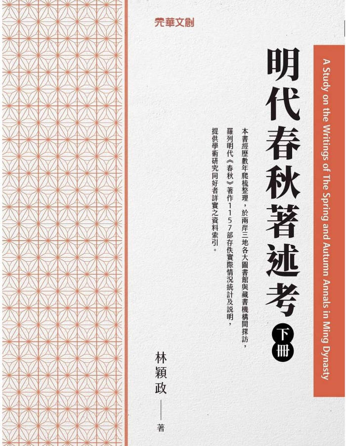 作者简介:林颖政(Lin Ying-zheng)台湾中央大学中国文学系博士。曾任台湾中央大学中国文学系助理教授、中原大学通识中心助理教授、新竹教育大学讲师等职。现为北京师范大学珠海校区文理学院中文系助理教授。主要从事经学(特别是春秋学)、明清学术思想史的研究。曾荣获北京师范大学珠海校区优秀教育实践工作者、青年教师教学优秀奖等荣誉。其代表作即为《明代春秋著述考》,此外还发表有〈论四库全书总目对明代春秋学的评价标准〉等重要期刊论文。