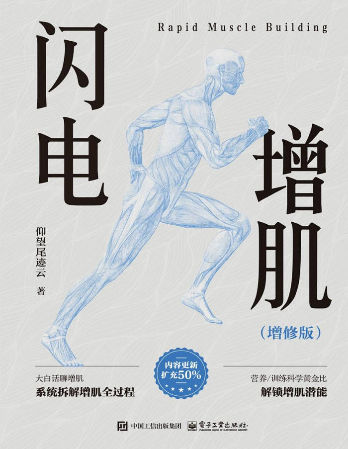 作者简介:仰望尾迹云,增肌减脂指导约50000人次。国际营养补充剂品牌House of Nutrition中国区前首席运动营养专家,品牌推广大使。中国铁道科学研究院聘用专家,中国空军医学研究所营养中心聘用专家,中国运动营养领军人、北京康比特体育科技股份有限公司内部培训专家。出版畅销书《我的最后一本减肥书》,多次获当当、京东图书榜双料销量榜首,2017年全国十大健康类图书。出版畅销书《这样减肥不反弹》《减肥,我要饱饱地瘦下去》《闪电增肌》《健身营养书——让增肌减脂变简单》《健身必须懂——极简健身生理学》《写给健身者的运动解剖学》《又瘦又美又健康》。电子工业出版社优秀作者,人民邮电出版社优秀作者,当当2021中国影响力作家。知乎健身专业高信赖度大V,B站运动营养学领域知名UP主。