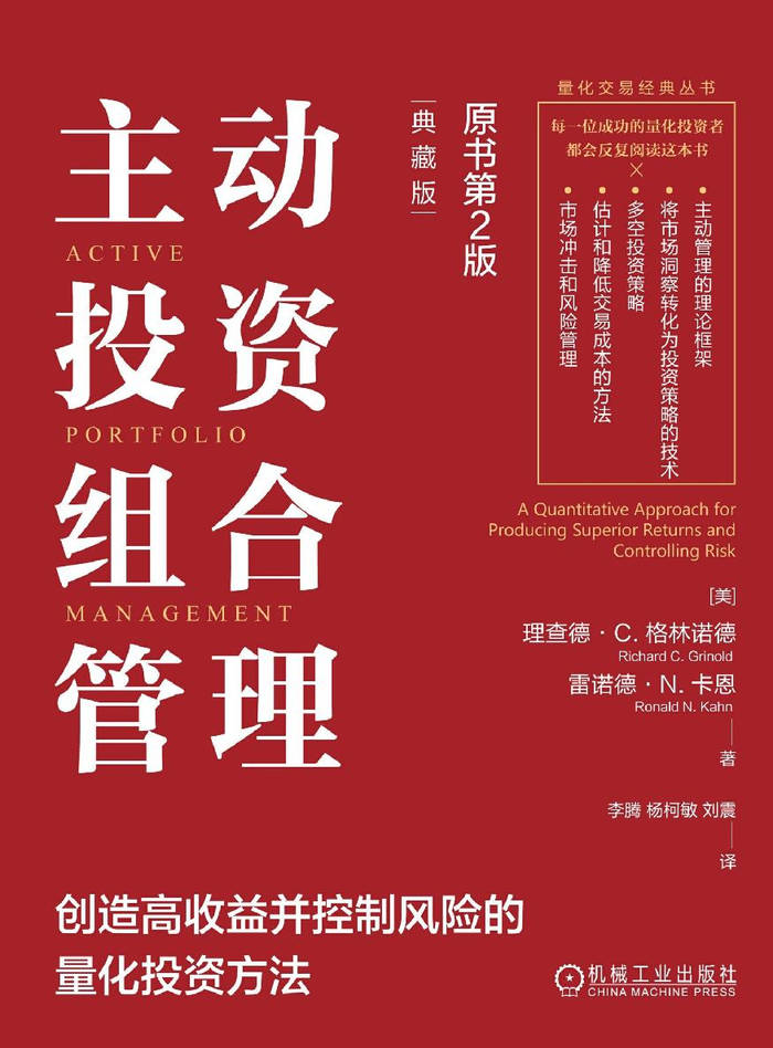 本书以其数学上的严谨性和内容上的系统性成为量化组合投资领域的权威之作,被业内人士奉为圣经。该书细致描述了如何找到影响资产收益的原始信号,如何将它们转化为精细预测,以及如何根据这些预测构建高效的投资组合——即持续战胜市场的投资组合。这本独一无二的书帮助了数以千计的投资经理,既是他们走上量化之路的引路者,又是他们作为量化基金经理的职业生涯中不可或缺的伙伴。与第1版相比,《主动组合管理》的第2版甚至更胜一筹。第2版细致地描述了怎样将经济学。