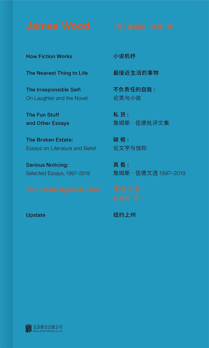 作者简介:詹姆斯·伍德(James Wood),1965年生,英国批评家、散文家、小说家,曾任《卫报》首席文学批评家、《新共和》资深编辑,现为《纽约客》专栏作家、哈佛大学文学教授,著有《破格》(1999)、《不信之书》(2004)、《不负责任的自我》(2004)、《小说机杼》(2009)、《私货》(2013)、《最接近生活的事物》(2015)、《纽约上州》(2018)。